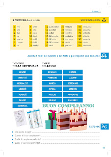 Una prima pagina introduce una specifica funzione comunicativa presentando anche gli elementi grammaticali che verranno affrontati nella lezione. Per queste pagine, che possono essere costituite da brani o dialoghi, viene spesso proposta anche un’attività di ascolto, simboleggiata dalle cuffie con il numero della traccia audio, che può essere effettuata prima o dopo l’analisi del testo. In entrambi i casi, infatti, l’attenzione dello studente dovrà porsi in contatto con nuovi elementi morfo–sintattici che gli permetteranno di esprimersi su argomenti di primario interesse.